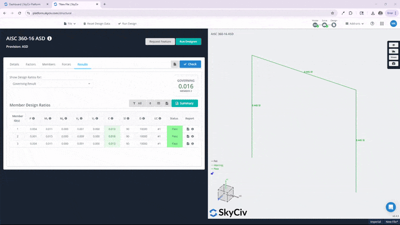 Run instant design checks for steel, concrete, foundations, and more, with code-referenced PDF reports.
