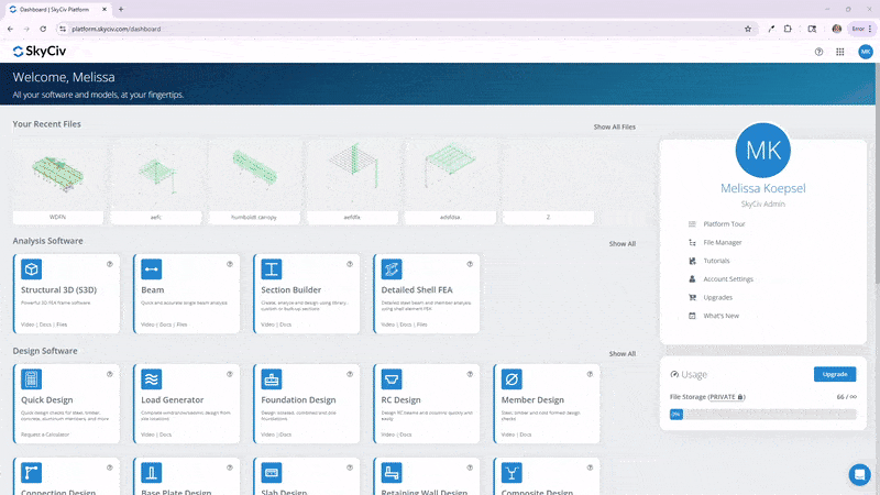 SkyCiv runs entirely in your browser. No downloads, license managers, or admin setup. Just sign in and get to work from any device.