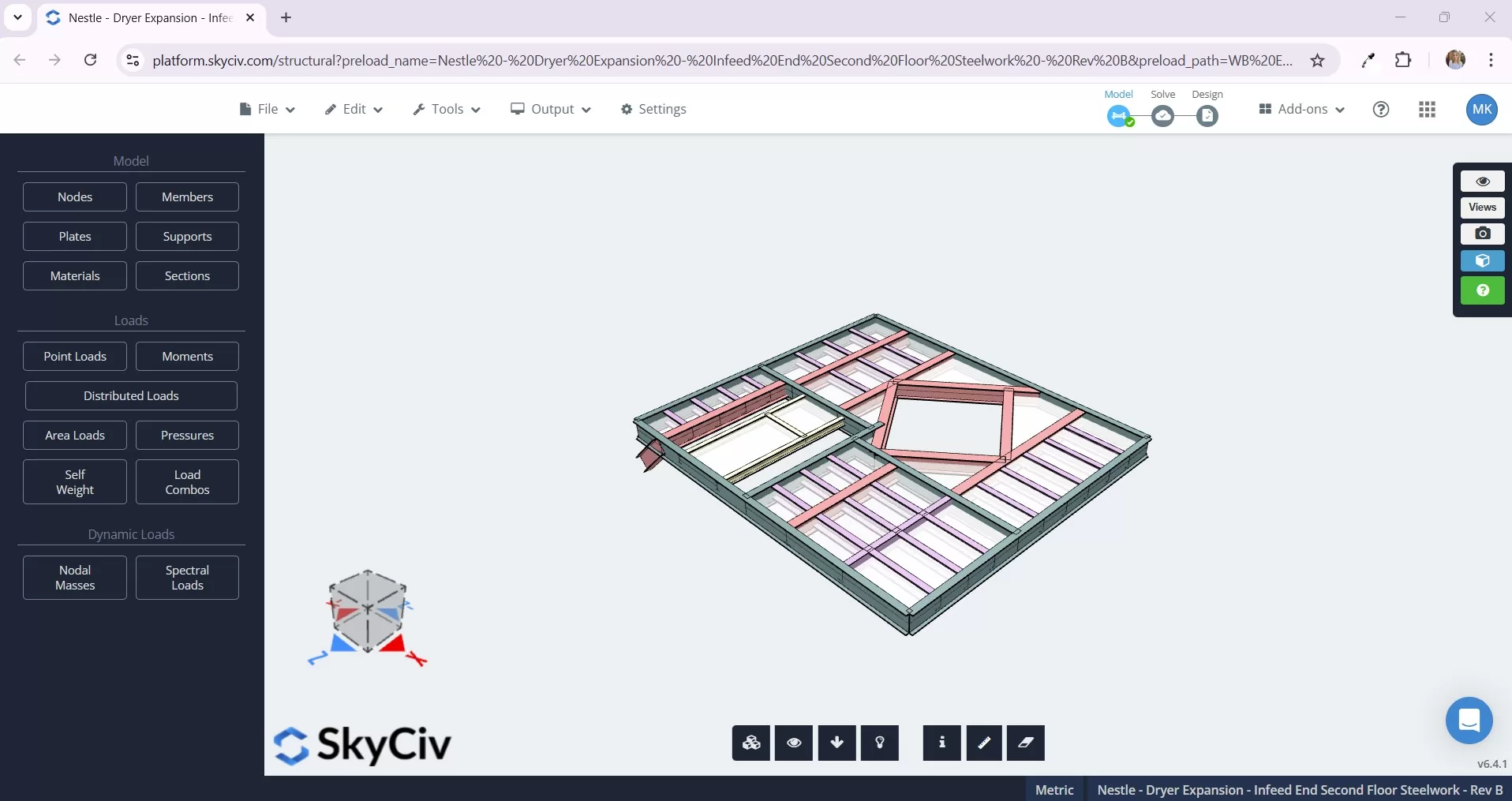 - 3D Modeling: The existing structure and dryer modules were meticulously modeled in SkyCiv, integrating machinery and structural elements.