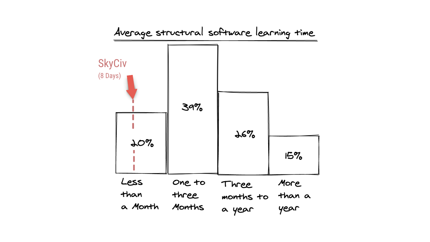 So, in one clean infographic, our survey findings were that SkyCiv can be up to 17 times faster to learn than traditional software!